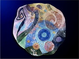 Tanjur ø=45cm Raku bijela, raku crno-smeda glina, terakota, engobe, podglazurne boje, prozirna sjajna glazura |